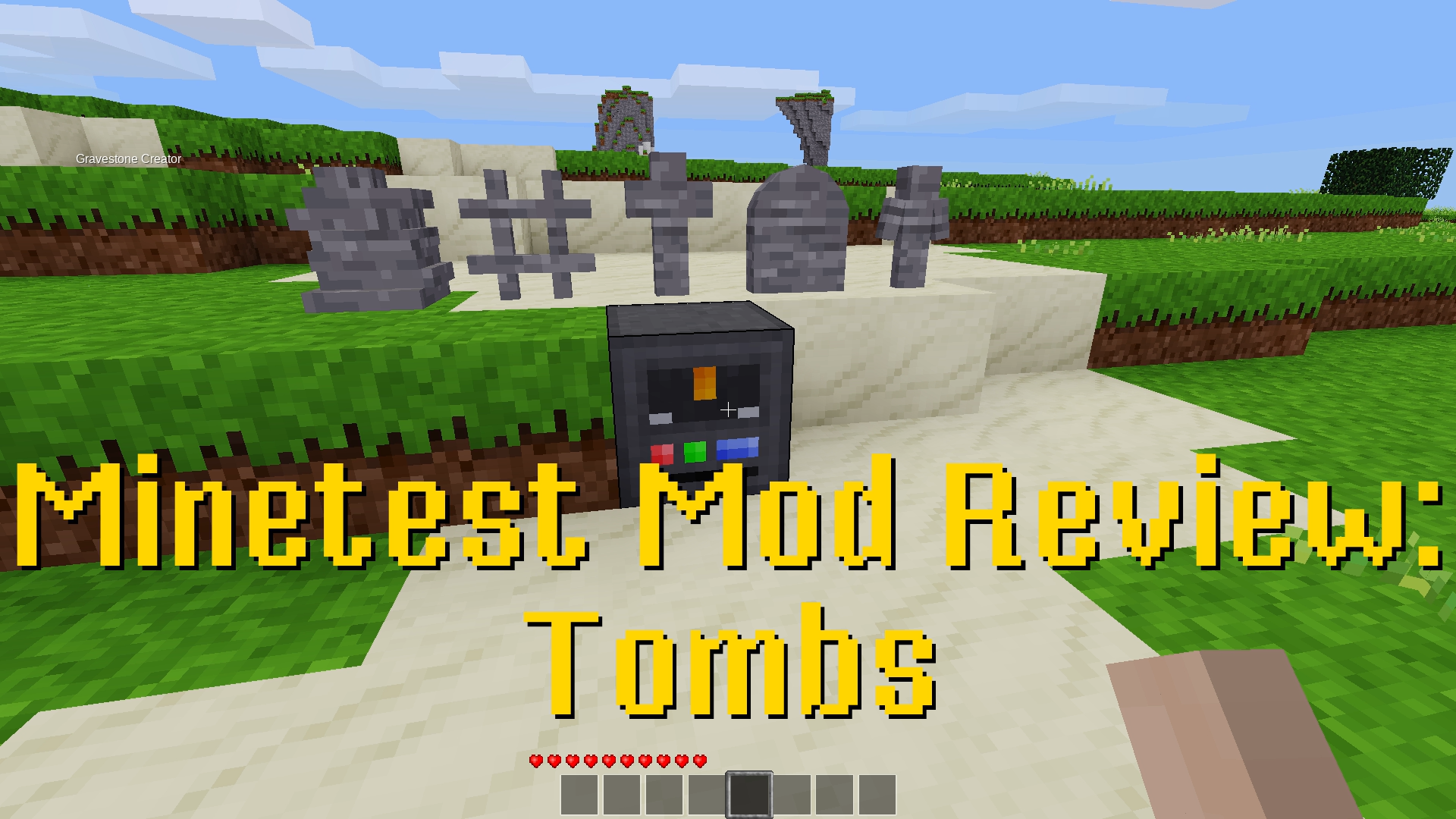 If you've ever wanted to honor a fallen friend, or just create a neat cemetery this is the mod for you. There are only two craft recipes, one for the tombstone creator, and one for the chisel. All of the stones are made in the machine with a bones node or tool and the material of your choice.
