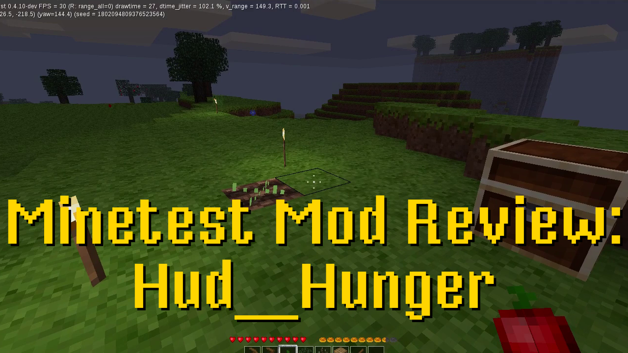 In this video I go over the HUD mod for Minetest, which gives you a hunger bar, and a health bar for armor, if equipped.